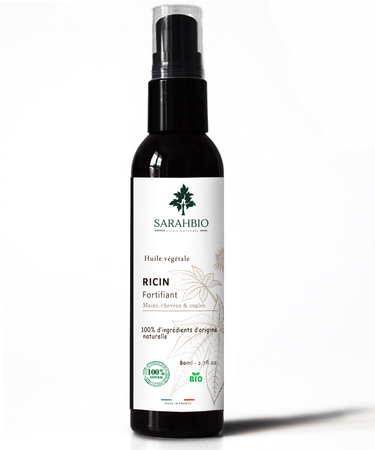 L’huile de ricin bio Sarahbio répare et protège les cheveux secs, cassants et abîmés. Huile fortifiante à l’aspect très visqueux, elle est réputée pour favoriser la pousse des cheveux, des cils et des ongles.